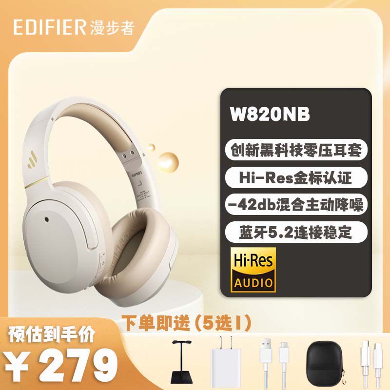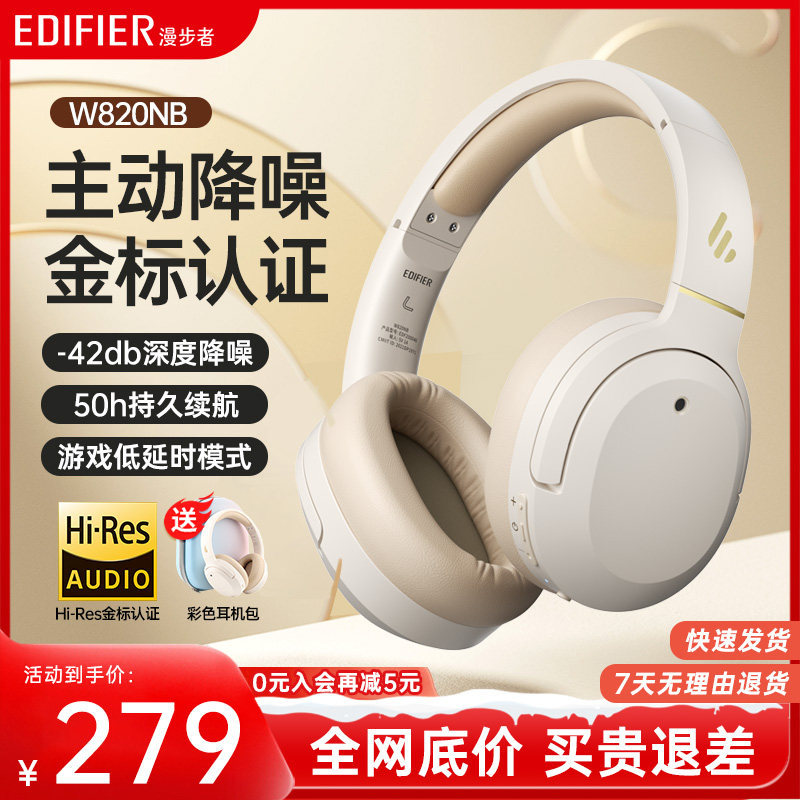 漫步者W820NB头戴式无线蓝牙主动降噪耳机花再耳麦适用于苹果华为