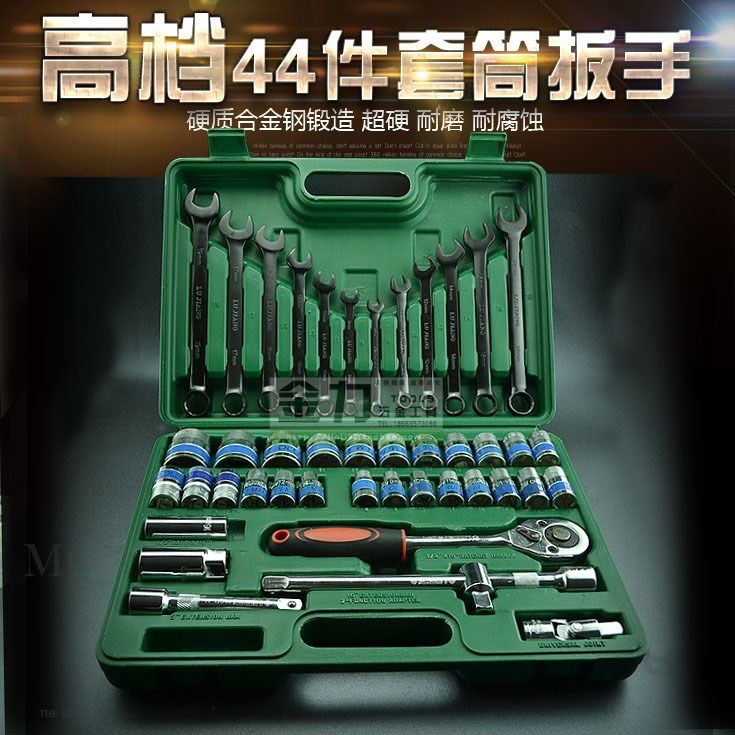 44件套汽车套筒工具组合汽修汽保扳手组套修理套装五金工具箱包邮