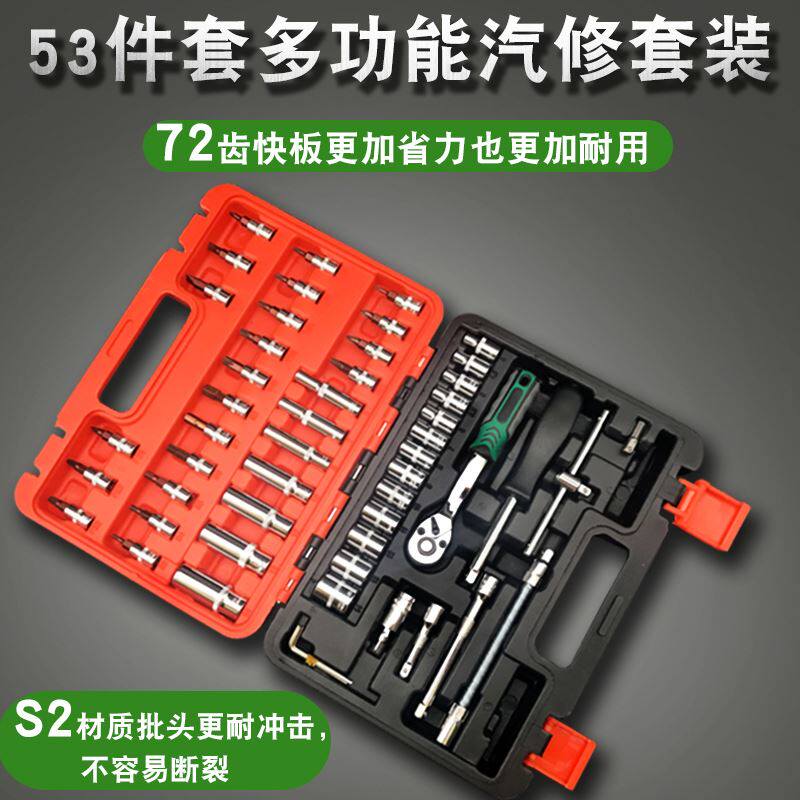 汽车维修46件53件套装工具汽修套装套筒棘轮扳手五金组合工具包邮
