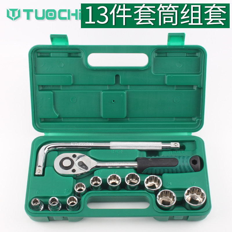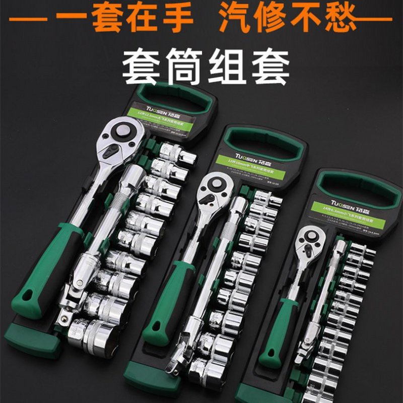 五金工具棘轮扳手套筒套装绿带套筒头12件14件20件汽修组套