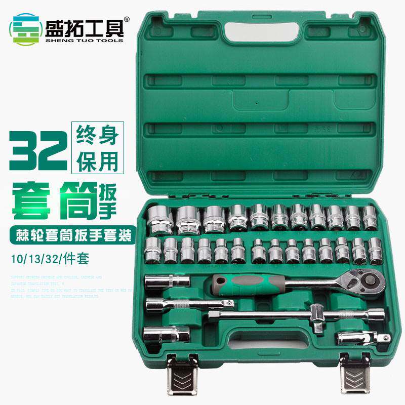 32件铬钒钢套筒扳手棘轮扳手随车工具组套汽车维修汽修工具套装