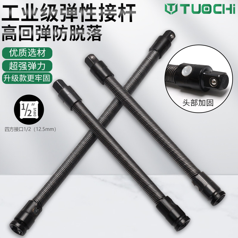 弹性软杆1/2大飞加长杆套筒弹簧长杆电扳手连接万向软轴棘轮弯杆