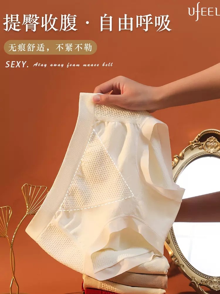 少女士内裤纯棉中腰石墨烯抗菌无痕加大码提臀透气三角女式底裤头
