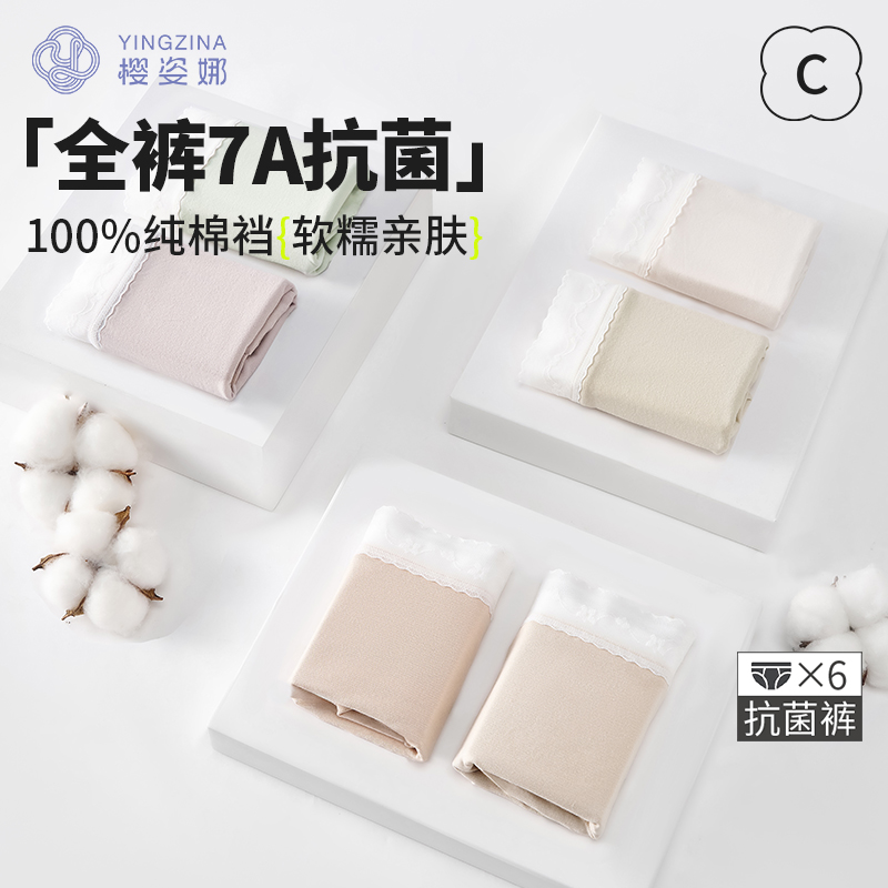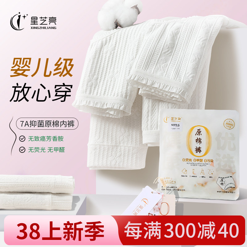 星芝亮无染原棉内裤女士纯棉抗菌100%全棉女生7A类婴儿棉三角短裤
