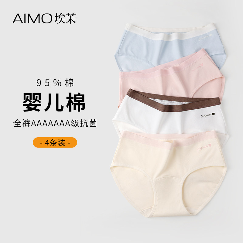 埃茉内裤女士纯棉抗菌全棉2023新款无痕大码女生中腰秋冬三角短裤