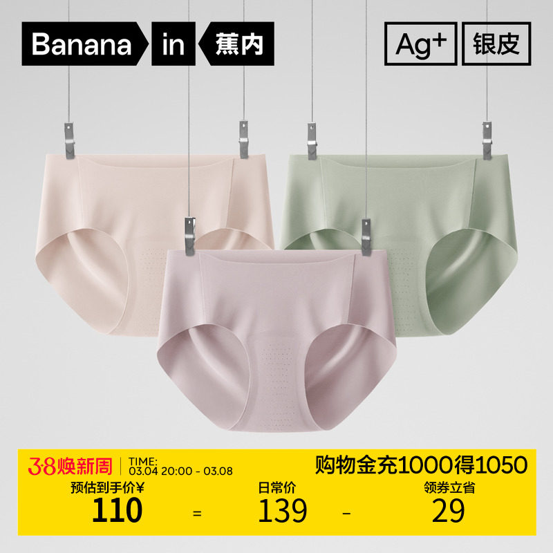 蕉内银皮508A女士内裤抗菌中腰薄款无痕健身防夹臀抗菌三角内裤女