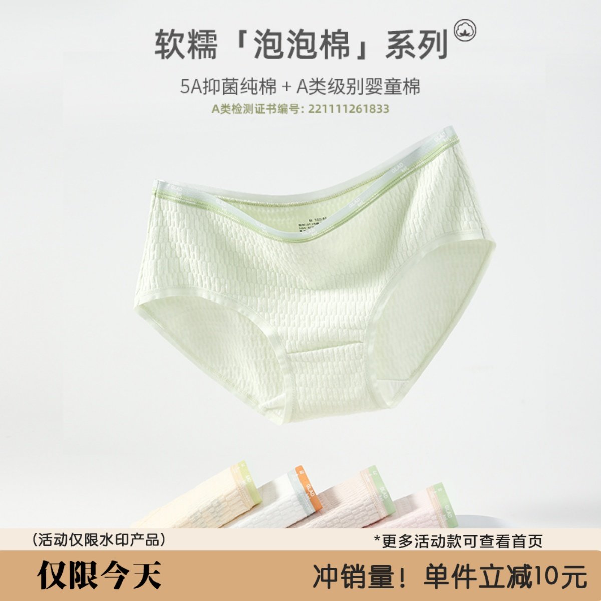 【3条装】软糯泡泡A类婴儿棉5A抗菌少女内裤棉高品质舒适三角裤