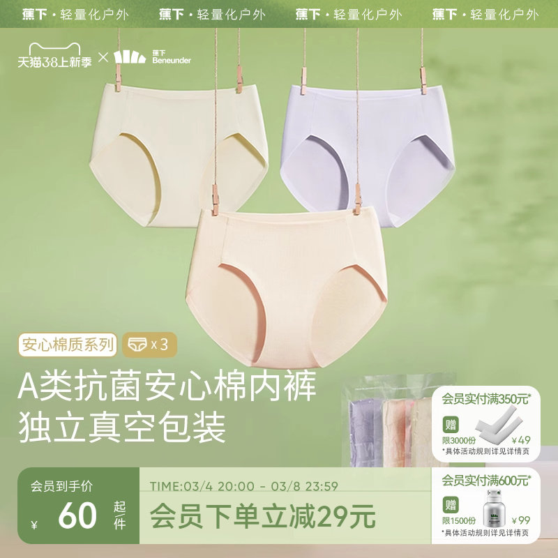 蕉下棉质内裤女CT049抗菌透气无痕纯棉底档内裤中腰三角短裤纯色