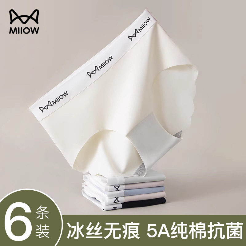 猫人内裤女士纯棉抗菌无痕中腰少女生三角桑蚕丝高腰收腹短裤新款