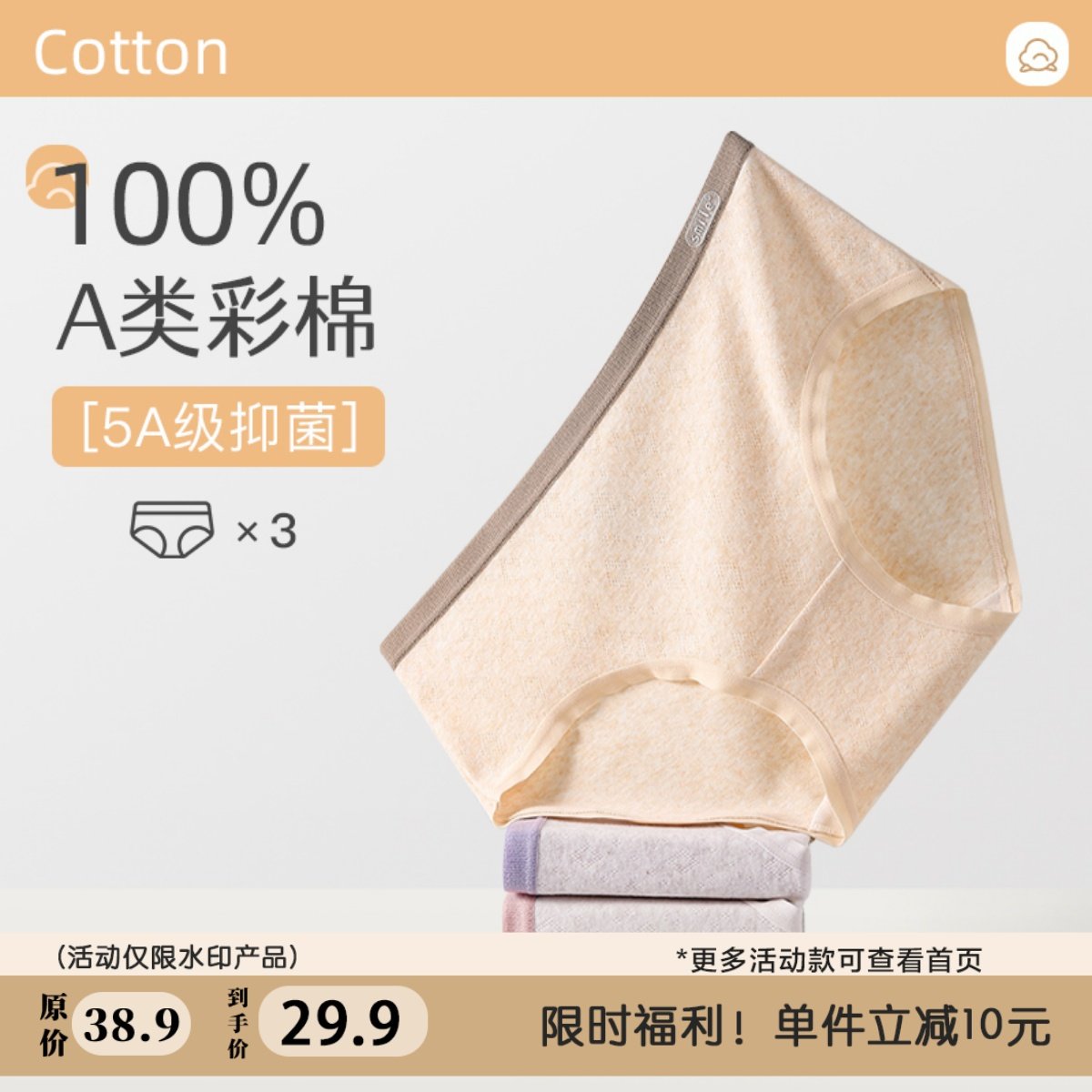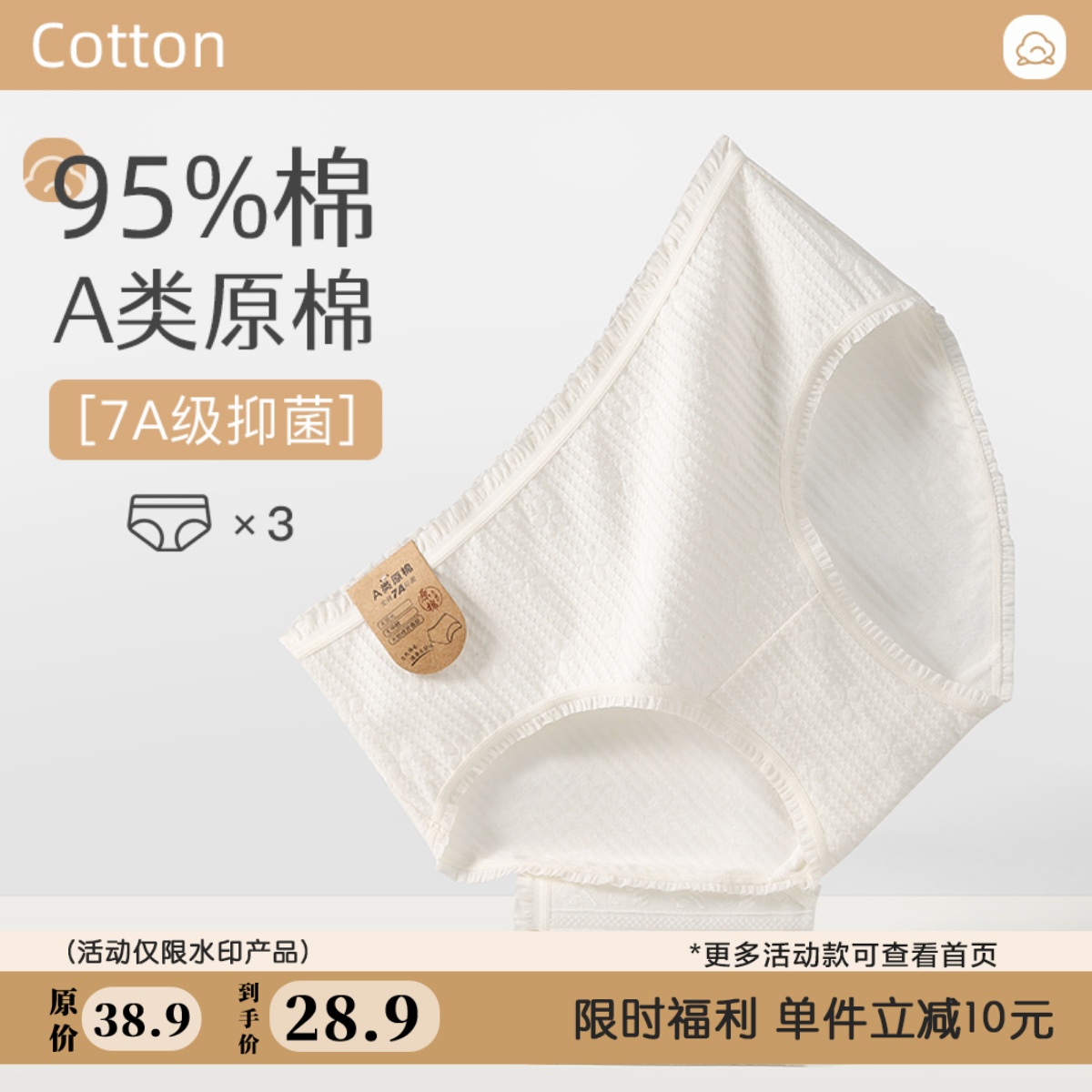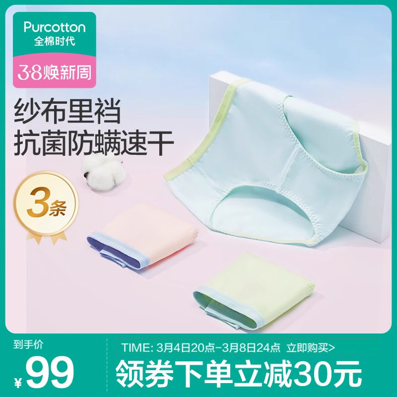 【3条装】7A抑菌A类婴儿棉女士内裤纯棉白色女生基础品质三角裤