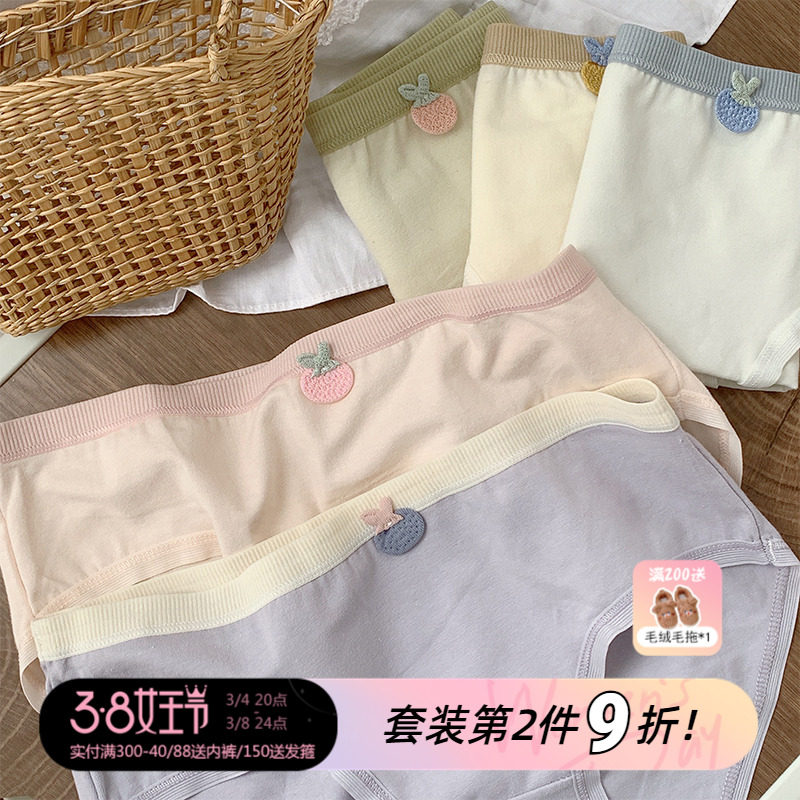 咬一口草莓@5条装内裤纯棉少女学生全棉裆舒适ins简约可爱三角裤