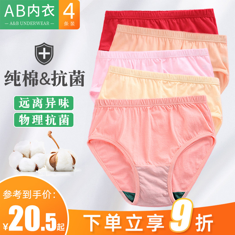 ab女内裤纯棉抗菌舒服中老年妈妈全棉短裤宽松大码高腰三角裤2822