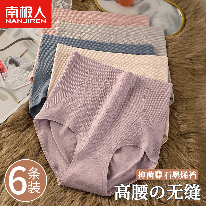 石墨烯少女抗菌内裤女纯棉高腰胖MM大码透气全棉无痕中腰三角裤头