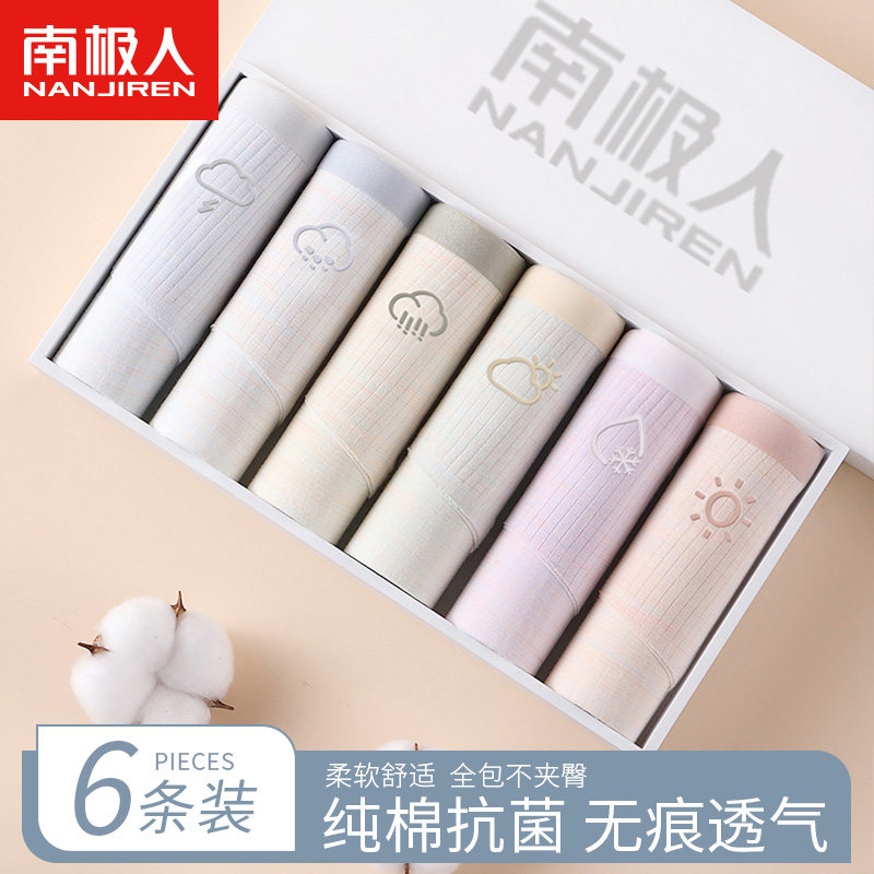 南极人内裤女士纯棉无痕抗菌少女生100%全棉底裤大码性感三角短裤