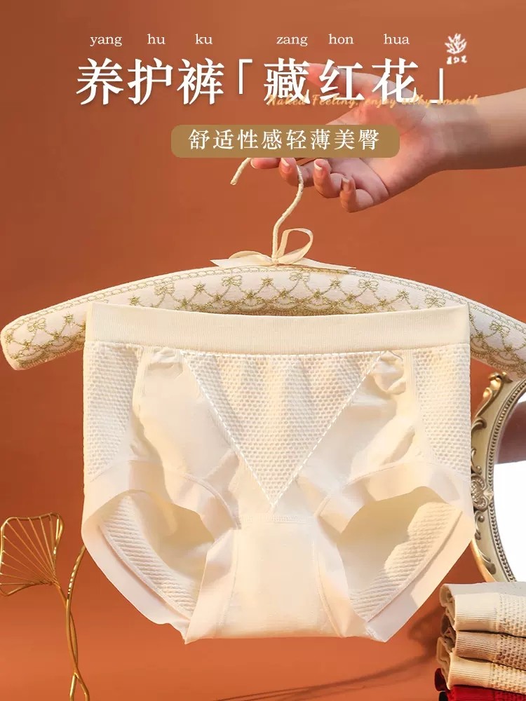 【藏红花】中腰微收腹高弹舒适无痕透气抗菌底档三角内裤女DB