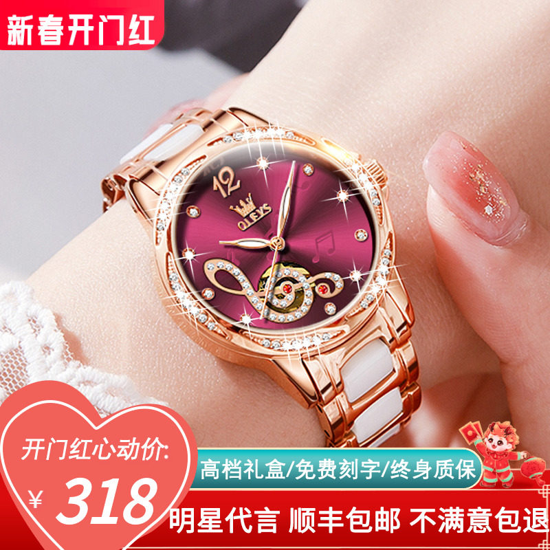 瑞士新款正品名牌女士手表女款机械表全自动简约轻奢小众女表十大