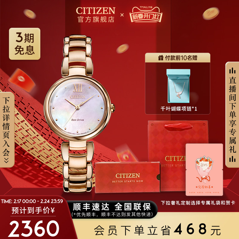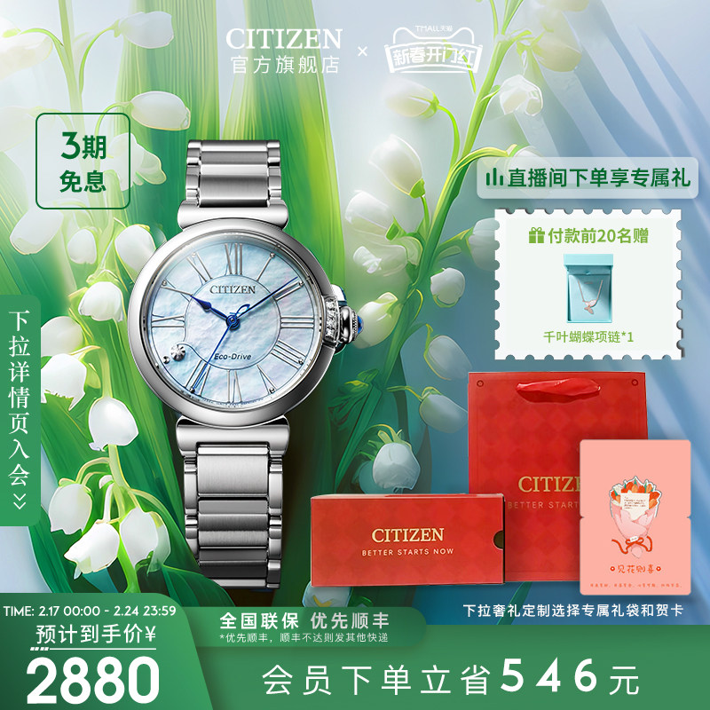 西铁城官方旗舰店花语风吟贝母光动能时尚小众轻奢手表女士EM0533