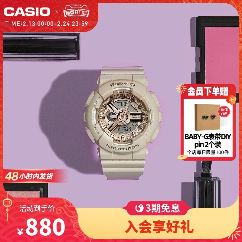 casio旗舰店BA-110XCP运动防水女士手表卡西欧BABY-G运动官方