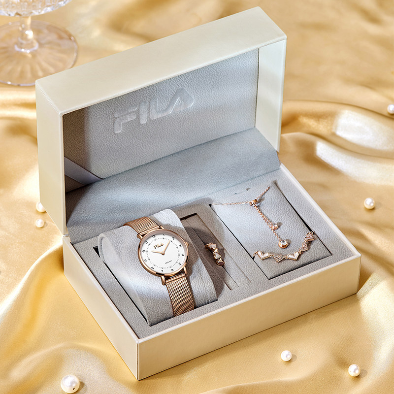 FILA斐乐手表简约时尚轻奢小众商务女士小圆表套装礼盒6160-126
