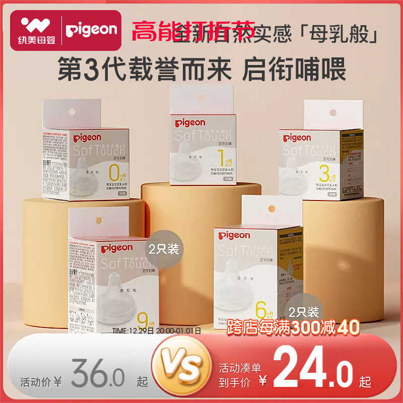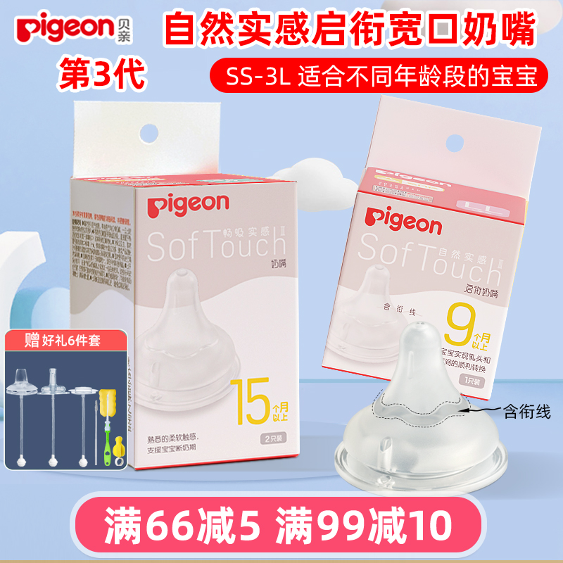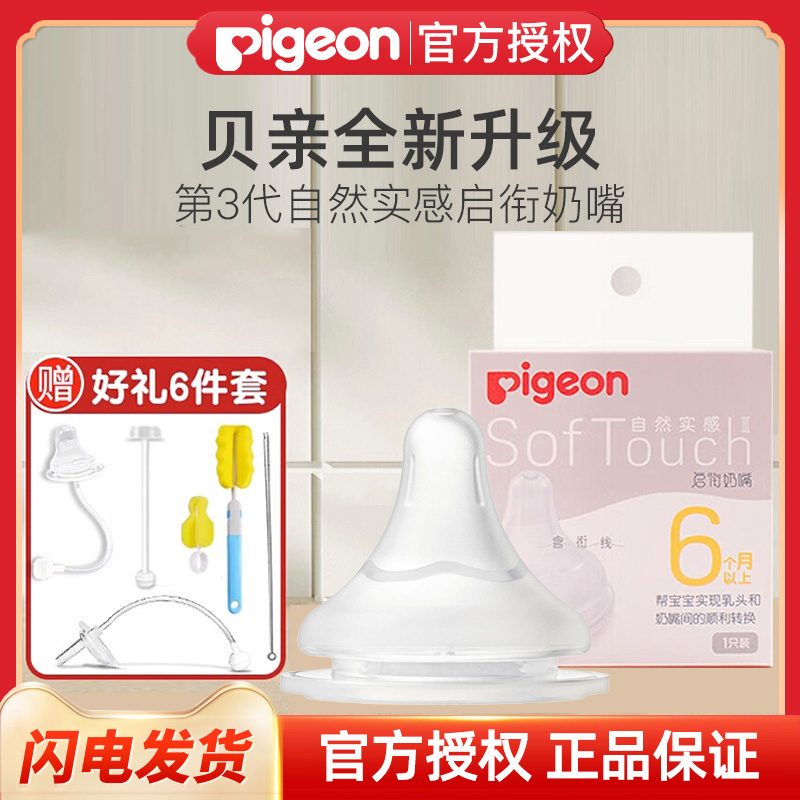 Pigeon 贝亲奶嘴新生婴儿宽口径奶嘴自然实感3代启衔硅胶宝宝奶嘴