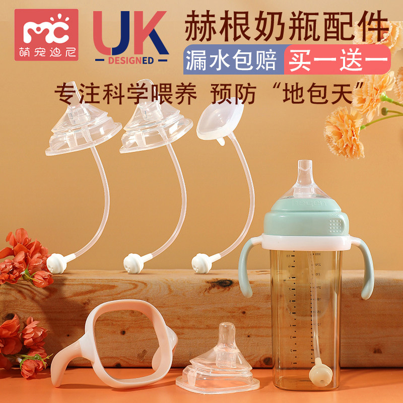 适用赫根奶瓶配件奶嘴鸭嘴学饮吸管杯重力球把手柄heheo哈根直饮