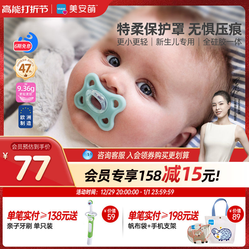 MAM美安萌安抚奶嘴comfort全硅胶安睡型一体式奶嘴