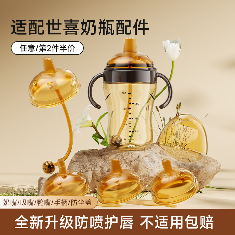 适配世喜奶瓶配件把手柄奶嘴重力球鸭嘴学饮嘴吸管水杯头防尘盖子