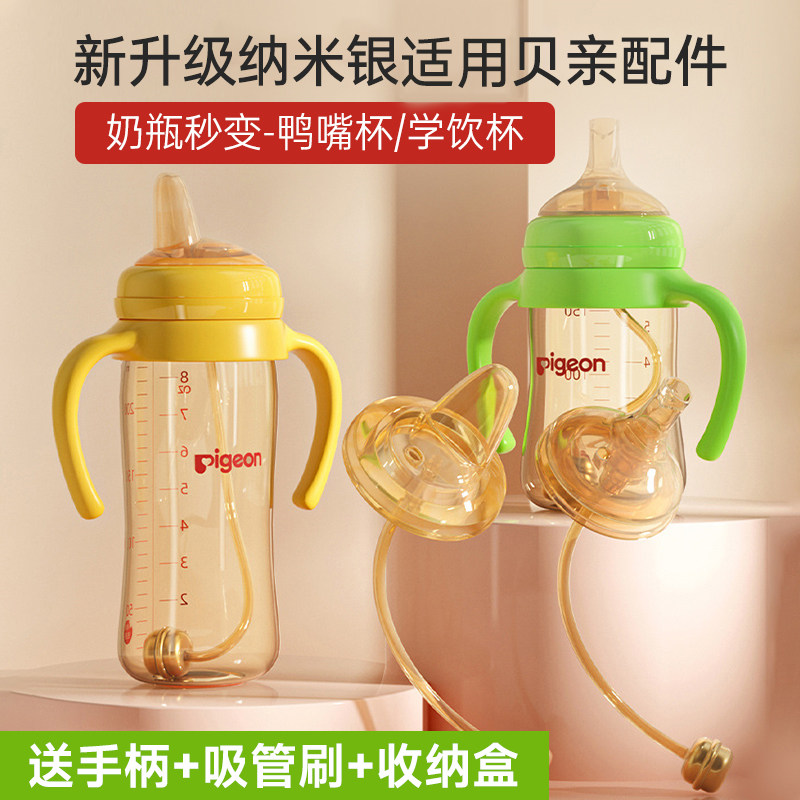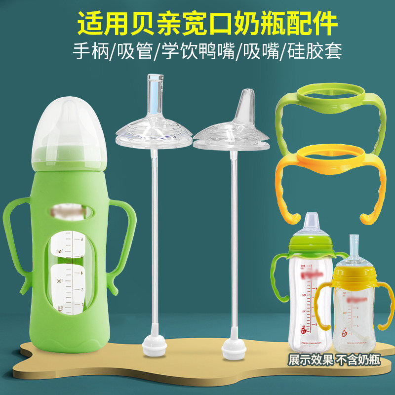 适配贝亲奶瓶吸管配件纳米银超软防漏学饮嘴把手柄宽口径鸭嘴奶嘴
