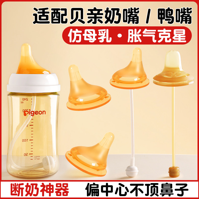 适配贝亲奶瓶配件吸管嘴纳米银鸭嘴奶嘴替换头直饮学饮杯重力球