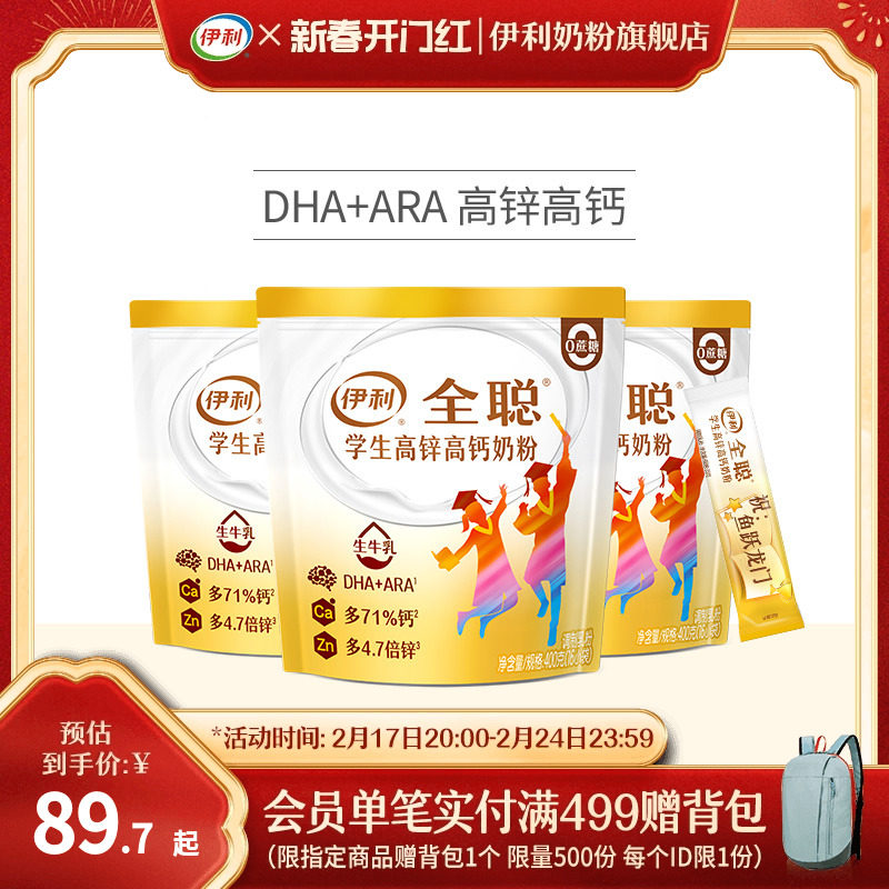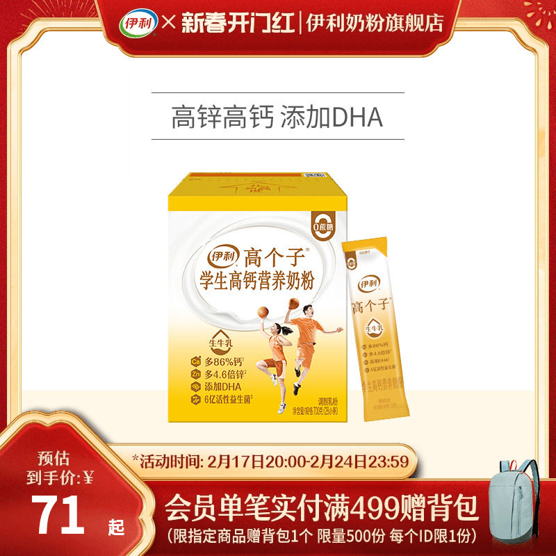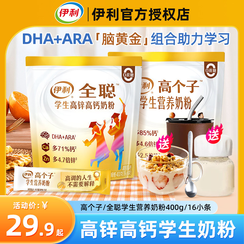 伊利官方旗舰店高个子学生营养奶粉青少年早餐奶粉多种维生素条装