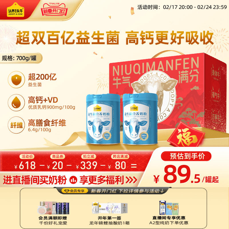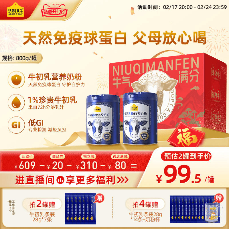 认养一头牛中老年奶粉成人高钙天然免疫蛋白牛初乳2罐送礼礼盒装
