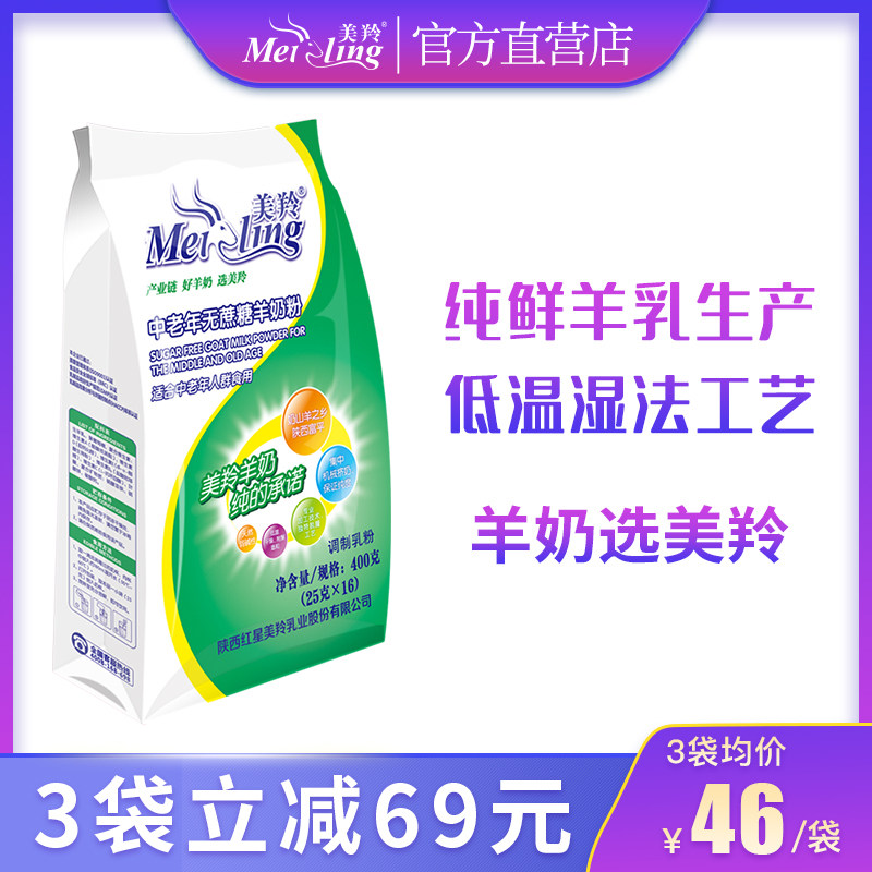 【美羚官方店】美羚羊奶粉中老年成人奶粉无蔗糖羊奶粉400g/袋