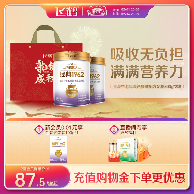 飞鹤经典1962金装中老年高钙多维奶粉营养品800g*2礼盒