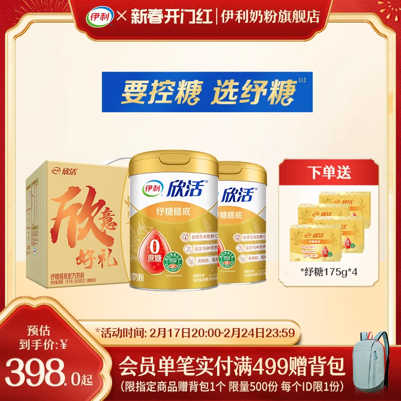伊利旗舰店欣活纾糖膳底中老年奶粉高钙低GI营养奶粉800g/罐