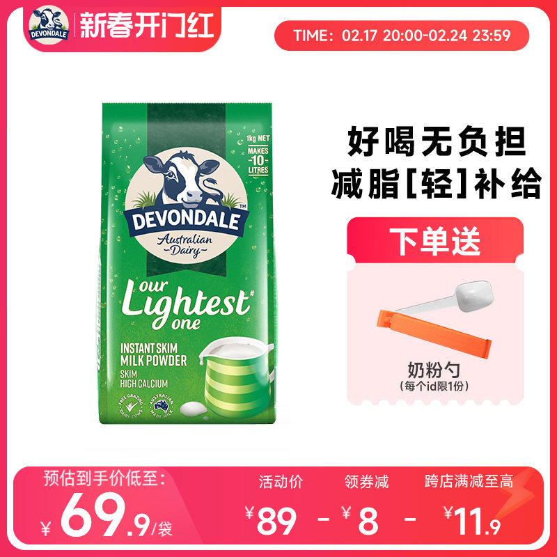 澳洲Devondale德运脱脂奶粉1kg袋装儿童成人青少年女士正品旗舰店