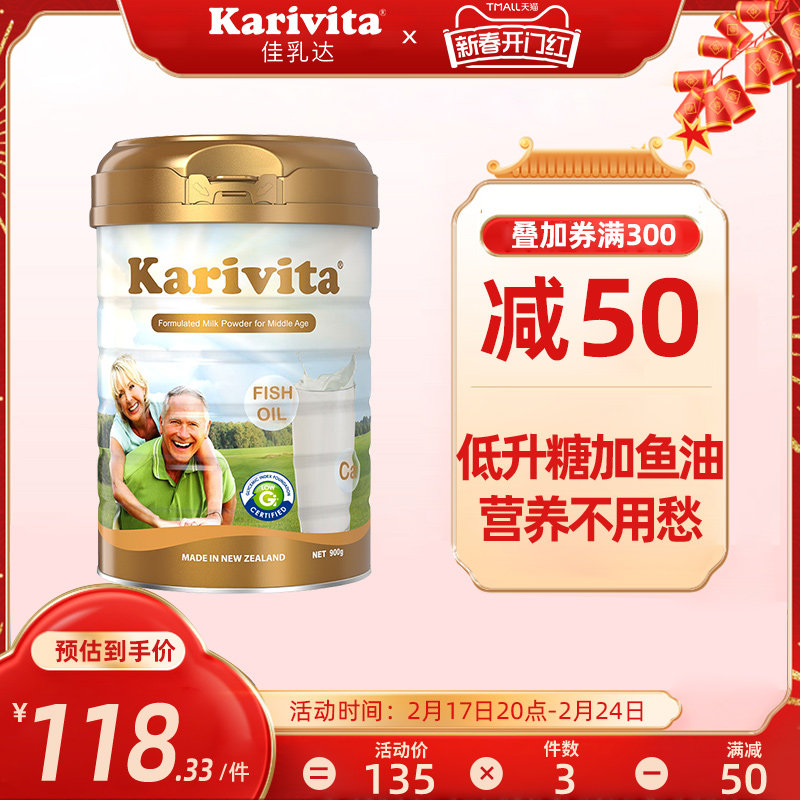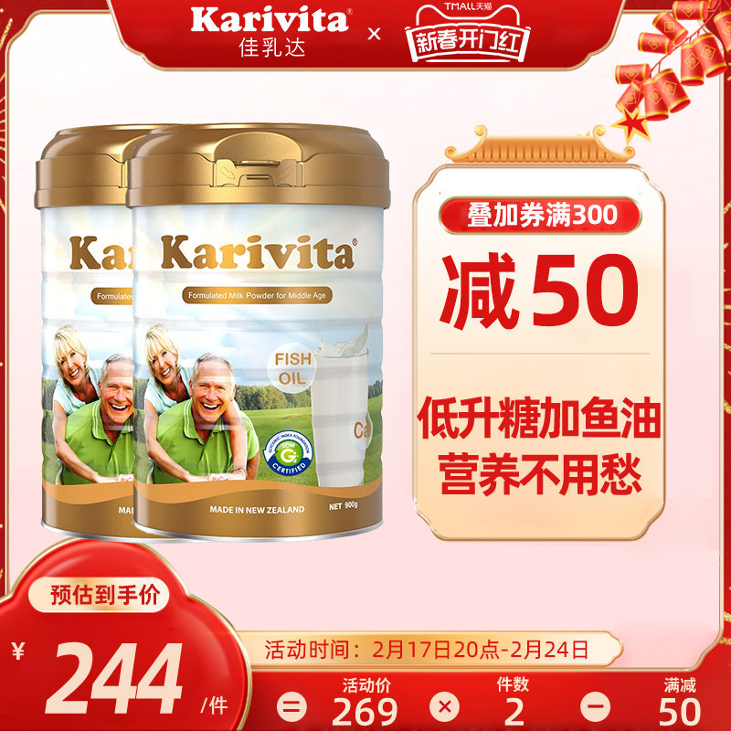 【安佳官方旗舰店】新西兰进口全脂成人营养高钙奶粉900g*2礼盒装