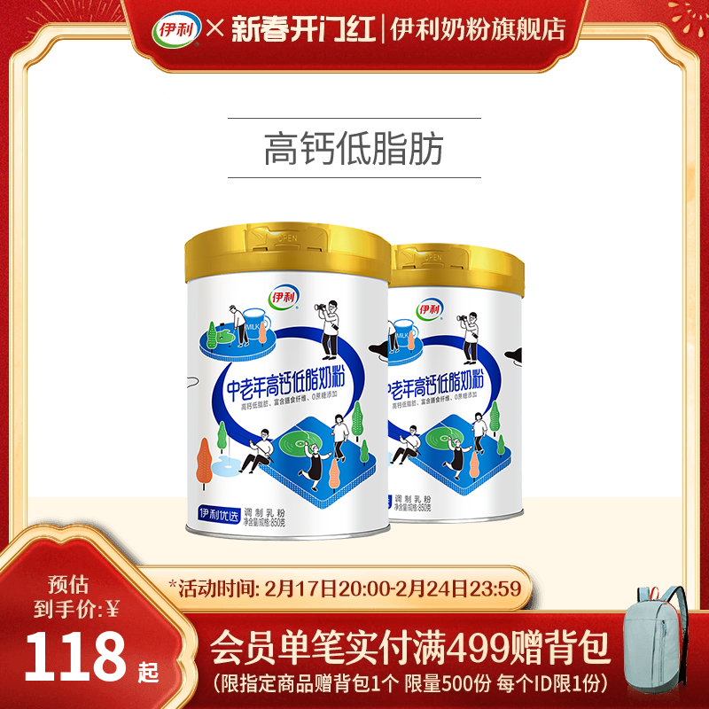 伊利奶粉官方旗舰店中老年高钙奶粉成年中年老人欣活800g罐装官网