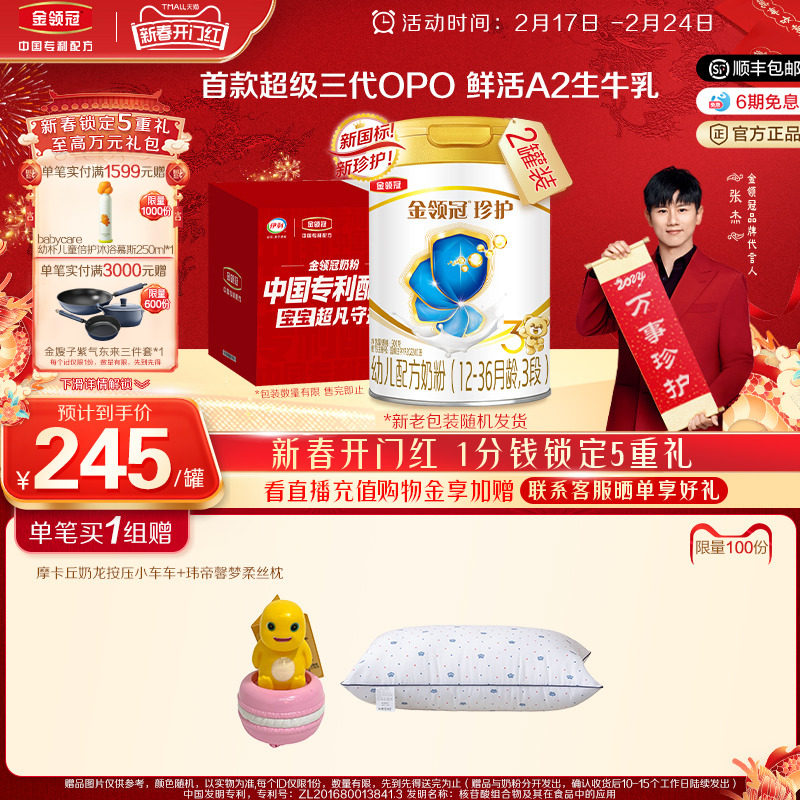 【28天新鲜 升级A2生牛乳】伊利金领冠珍护3段婴幼儿牛奶粉900g*2