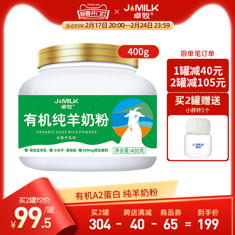 卓牧有机纯羊奶粉青年女士中老年成人全家小分子无蔗糖高钙羊奶粉