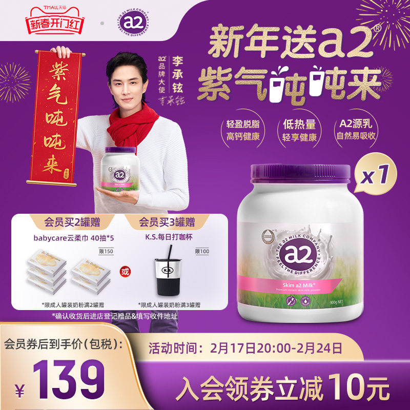 【紫吨吨】进口a2成人脱脂奶粉高蛋白全家女士中老年900g*1罐