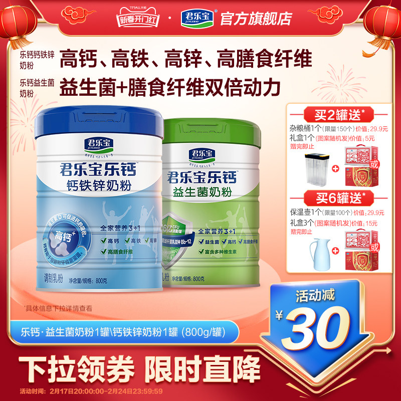 君乐宝中老年钙铁锌奶粉成人奶粉中老年益生菌奶粉礼盒乐钙
