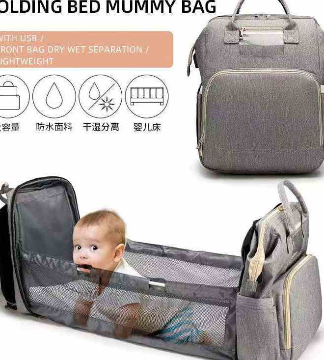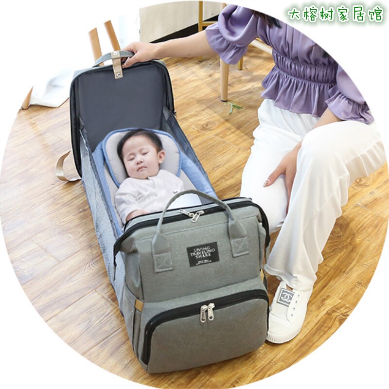 便携式妈咪包折叠床收纳包多功能大容量双肩母婴包外出手提背包床