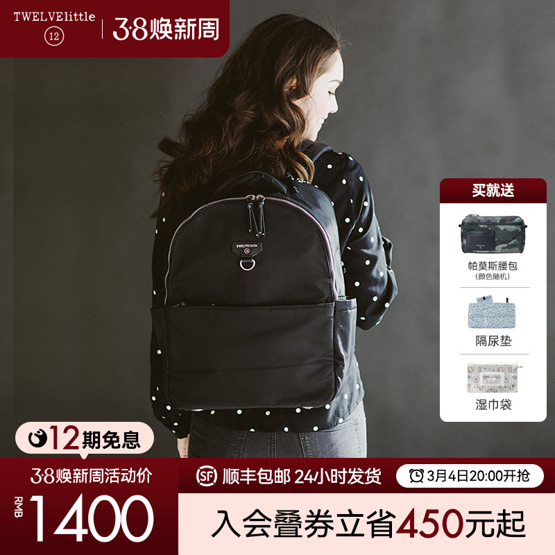 纽约12little妈咪包2024新款时尚女双肩包多功能轻便外出母婴包