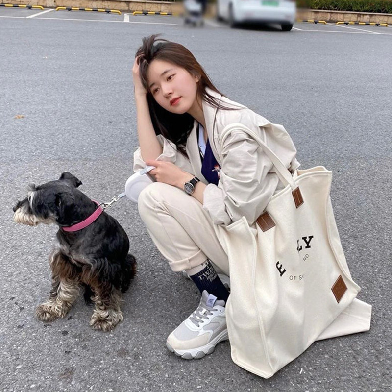 赵思露同款大容量妈咪包2024新款时尚托特包单肩手提公文包帆布袋