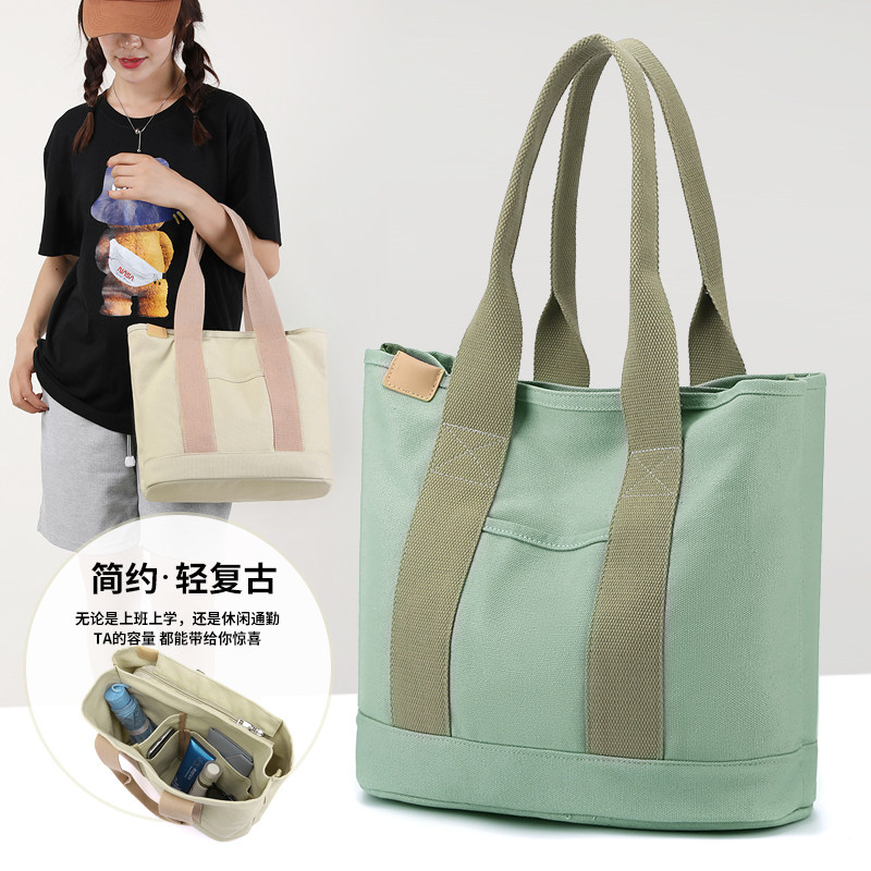 新款手提帆布托特包外出多功能母婴包韩国轻便妈咪包大容量购物袋