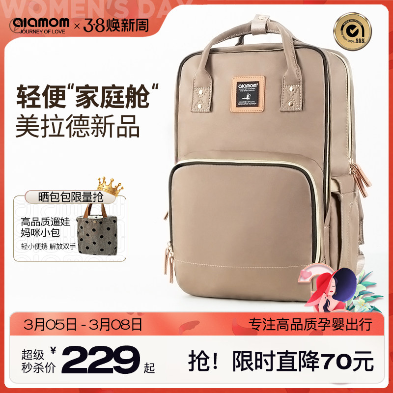 alamom妈咪包2023新款超大容量外出轻便双肩背包妈妈包母婴包