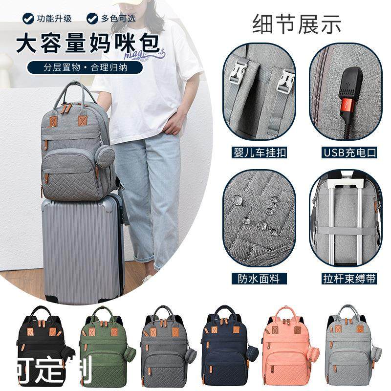 跨境多功能母婴包便携大容量收纳宝妈双肩包保温干湿分离妈咪包