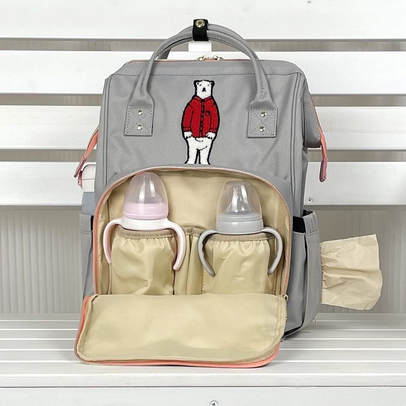小熊布袋妈咪包2023新款时尚可爱多口袋妈妈包大容量轻便母婴包