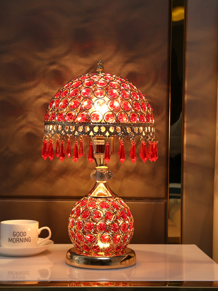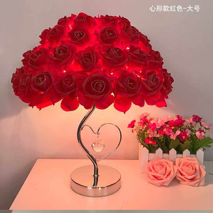 水晶台灯创意婚庆婚房红色陪嫁卧室床头灯台灯欧式玫瑰花结婚礼物