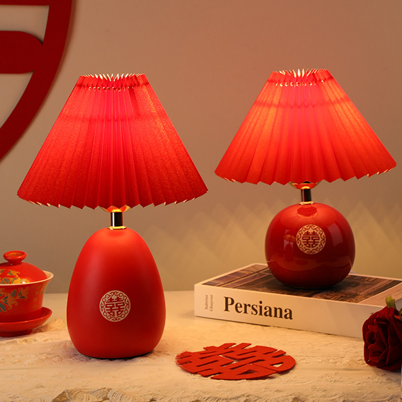 定制结婚红色台灯新娘陪嫁婚礼婚房长明灯百褶婚庆喜灯一对卧室床